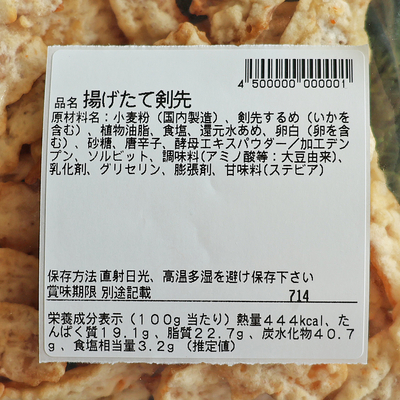 剣先するめの胴部分のみを柔らかく揚げました。